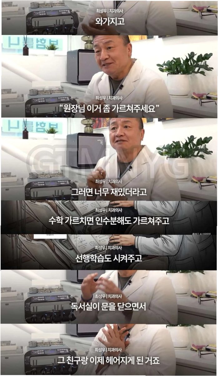 형편이 어려워 학원이나 과외를 받을 수 없었던 학생은 치과가 한가한 시간을 틈타 최 원장에게 모르는 문제들을 물어보며 학습 의지를 다졌습니다. 최 원장은 참고서를 사주는 등 학생의 꿈을 응원하며 학습을 도왔습니다. 비록 독서실이 문을 닫으면서 잠시 연락이 끊겼지만, 학생은 꿈을 향한 노력을 멈추지 않았습니다.
