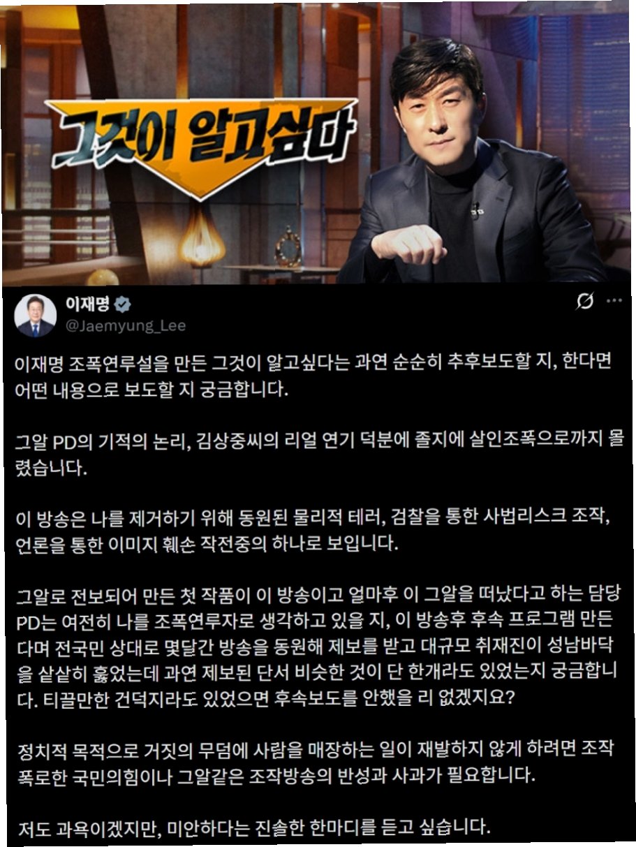 이재명 대통령의 '그것이 알고 싶다' 보도 관련 입장