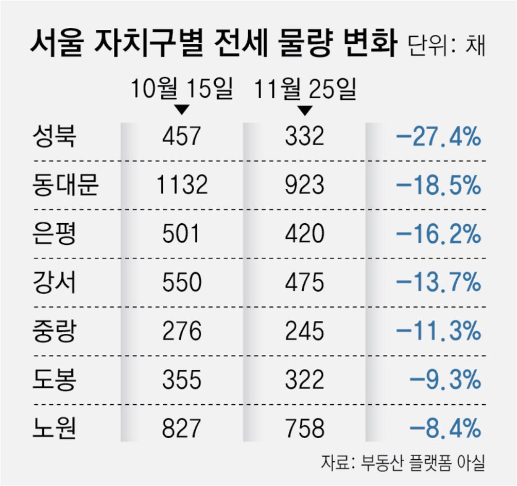 서울 아파트 전세 매물은 1년 전 대비 40% 감소했으며, 성북구, 중랑구, 관악구 등에서 급감세가 두드러집니다전세 수급 상황 지수는 강북 지역이 180 이상으로 강남보다 높아 매물 품귀 현상이 심각함을 나타냅니다이는 토지거래허가구역(토허제) 확대에 따른 실거주 의무 규제로 인해 갭 투자 매물이 많았던 중저가 지역의 신규 전세 공급이 급감했기 때문입니다또한, 기존 세입자가 눌러앉는 갱신 계약이 늘면서 신규 전세 거래 비중이 높았던 외곽 지역의 매물 감소 폭이 더욱 커졌습니다.