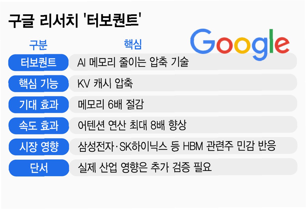 구글의 '터보퀀트' 기술은 AI 메모리 효율성을 높이지만, 메모리 수요 둔화보다는 AI 시장 확대의 촉매제가 될 가능성이 높습니다. AI 수요는 여전히 견조하며, 이는 메모리 시장의 구조적 변화 속에서 새로운 기회를 창출할 것으로 전망됩니다.
