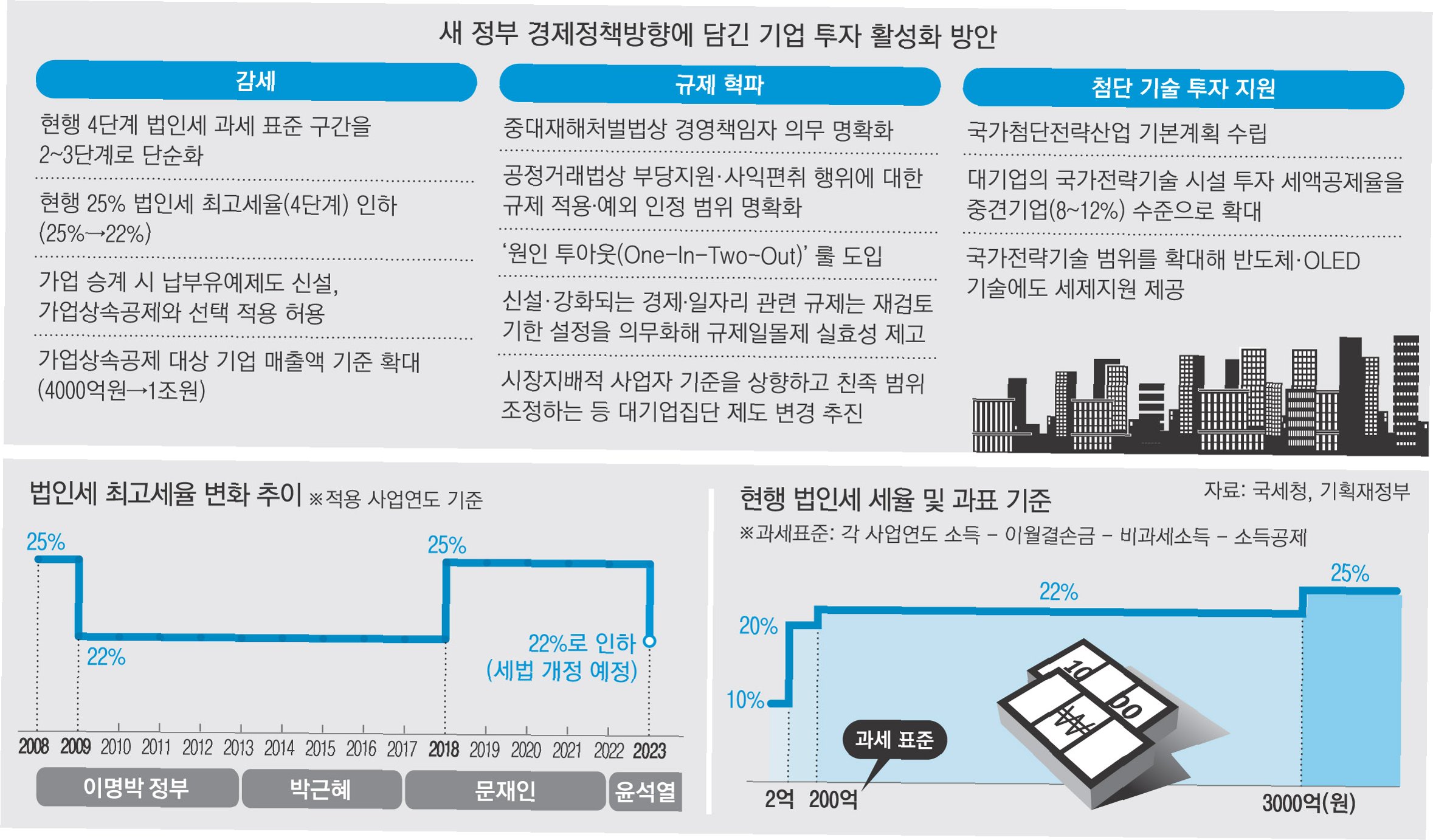 이재명 정부의 법인세 인상과 관련해 익명을 요구한 한 대기업 관계자는 이렇게 말했다. 앞서 기획재정부는 7월31일 발표한 '2025년 세제개편안'에서 법인세 4개 구간의 세율을 모두 1%포인트씩 올린다고 밝혔다. 2022년 윤석열 정부의 인하분을 원상복귀시키는 조치다. 개편안이 시행되면 2026년부터는 과표 구간별 누진세율이 2억원 이하 10%, 2억원 초과~200억원 이하 20%, 200억원 초과~3000억원 이하 22%, 3000억원 초과 25%로 상향된다.