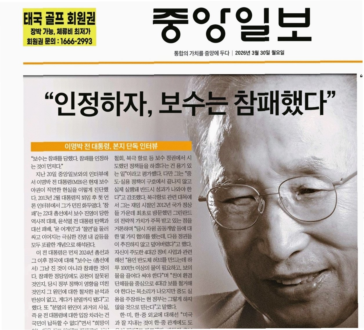 이명박 전 대통령은 13년 만의 인터뷰에서 국민의힘의 '보수 참패'를 인정하고 반성할 것을 촉구했습니다. 현 정부의 중도·실용 정책 기조는 긍정적으로 평가하면서도, 구호에 그치지 않고 구체적인 성과를 낼 것을 당부했습니다. 과거 정책에 대한 회고와 함께 외교의 중요성을 강조하며, 국가 발전을 위한 진심 어린 조언을 전했습니다.