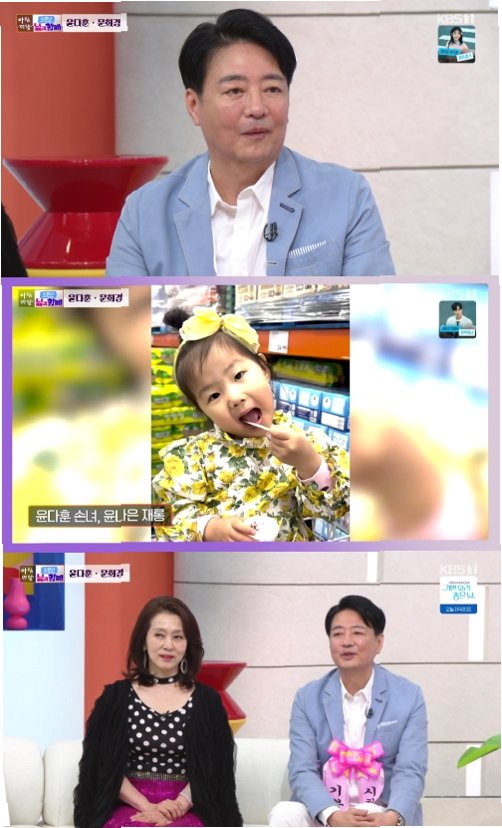 이날 방송에는 문희경과 함께 배우 윤다훈도 출연했습니다. 두 사람은 KBS 1TV 새 일일드라마 '기쁜 우리 좋은 날'에서 처음으로 호흡을 맞춥니다. 윤다훈은 문희경과의 첫 만남에 대해 '왜 이렇게 눈이 부시나 했다. 실내 조명을 켜 놓은 것 같았다. 그냥 조명이 걸어오더라'고 말하며 그녀의 눈부신 실물을 극찬했습니다.