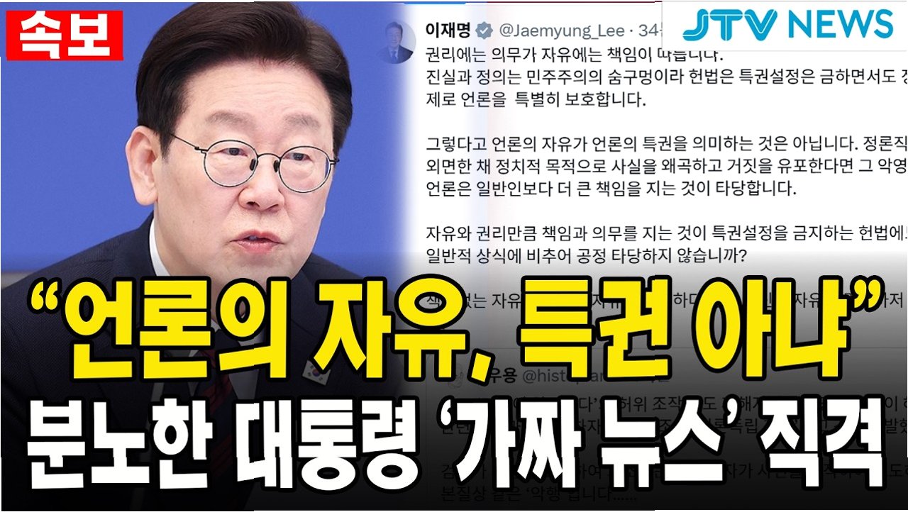 이재명 대통령, '가짜뉴스' 강력 규탄: "반란 행위와 다름없다"