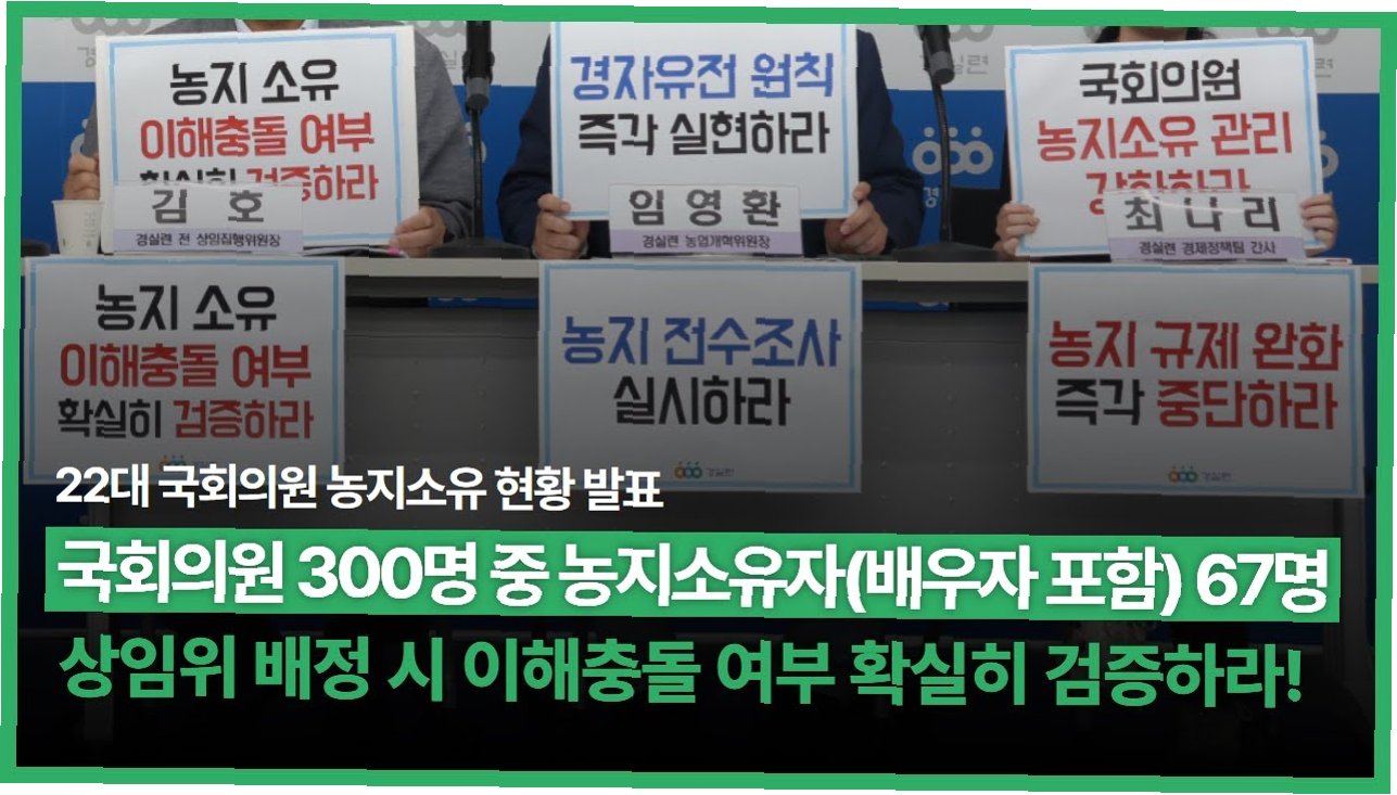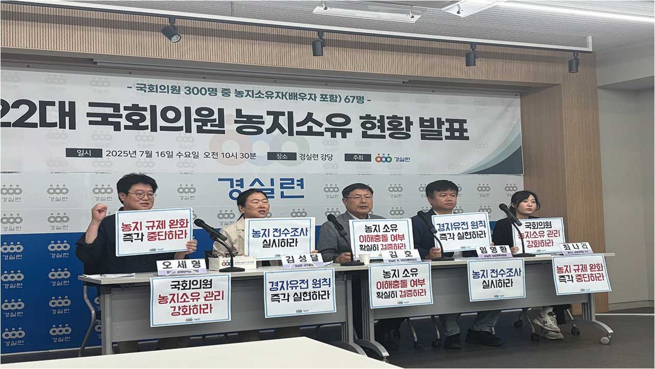 수도권 농지 보유 의원 10명, 투기 위험군 우려