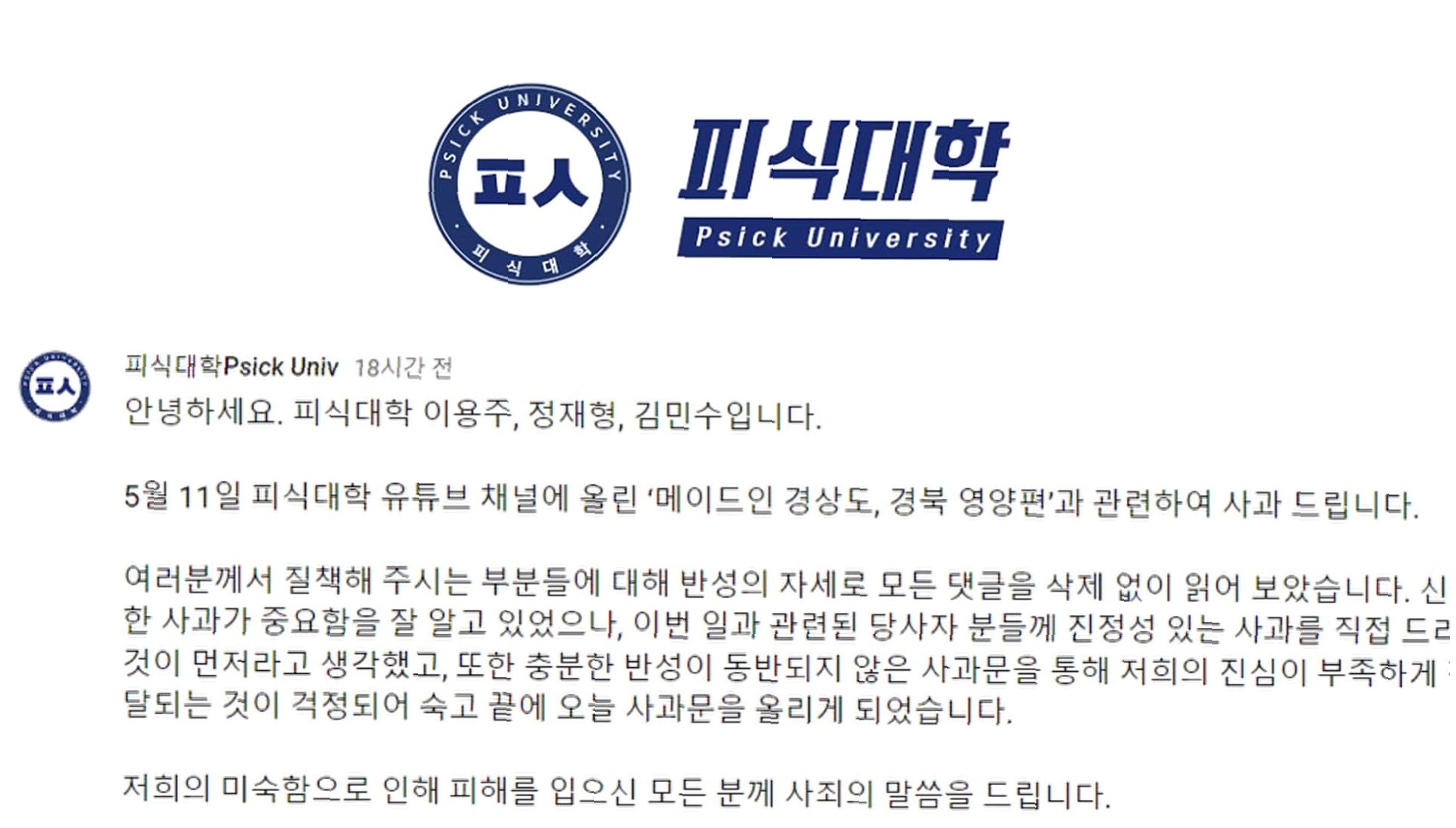 유튜브 채널 '피식대학' 이용주, 콘텐츠 오분류로 인한 업로드 금지 처분