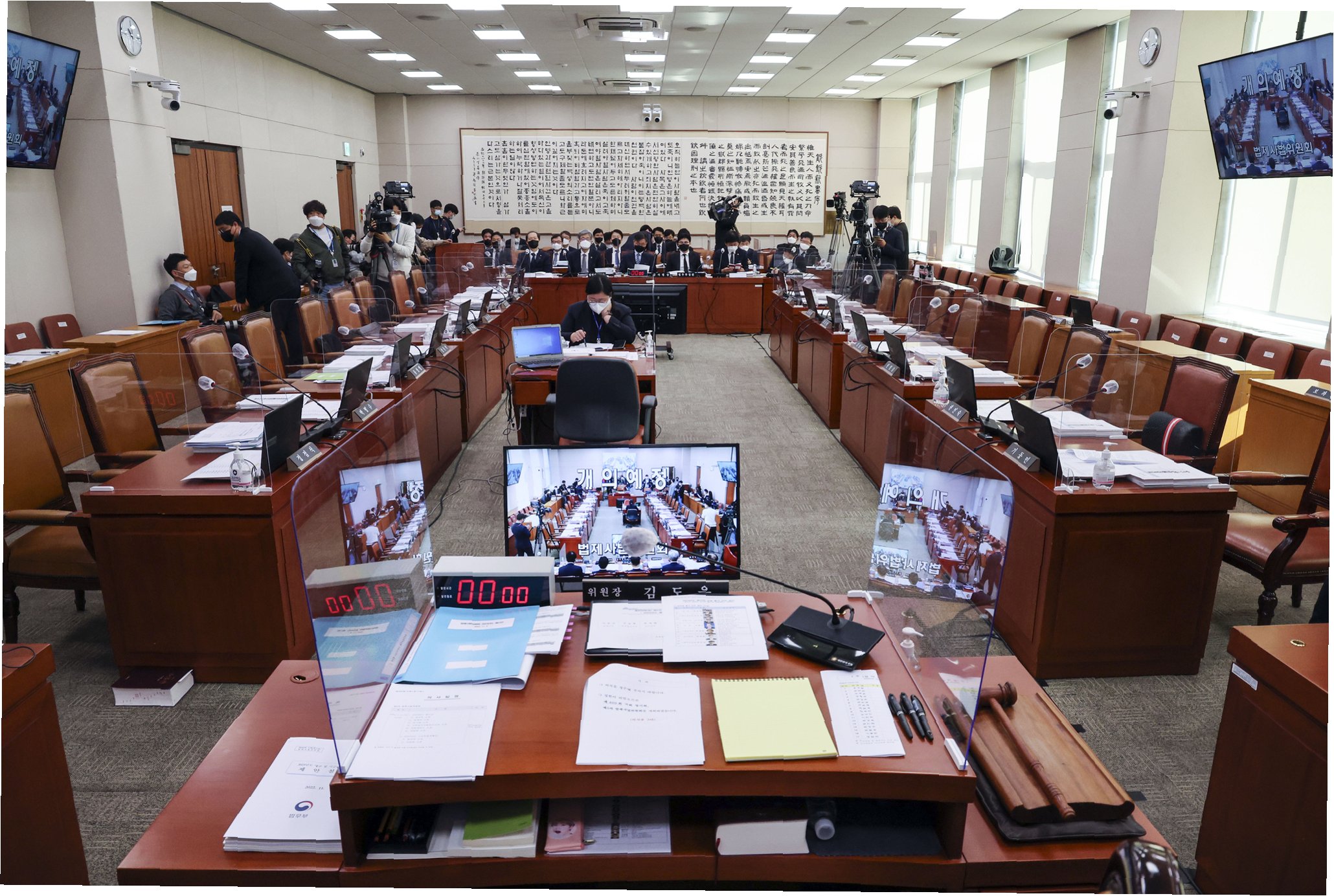 국회 법제사법위원회 전체회의에서 여야 의원들이 고성을 주고받으며 아수라장을 벌였습니다. 법사위원장인 추미애 더불어민주당 의원이 나경원 국민의힘 의원의 법사위 간사 선임을 거부하면서, 팽팽한 긴장감이 감돌았습니다. 이날 회의는 격렬한 언쟁과 대립으로 이어지며, 국회의 기능 마비에 대한 우려를 자아냈습니다.