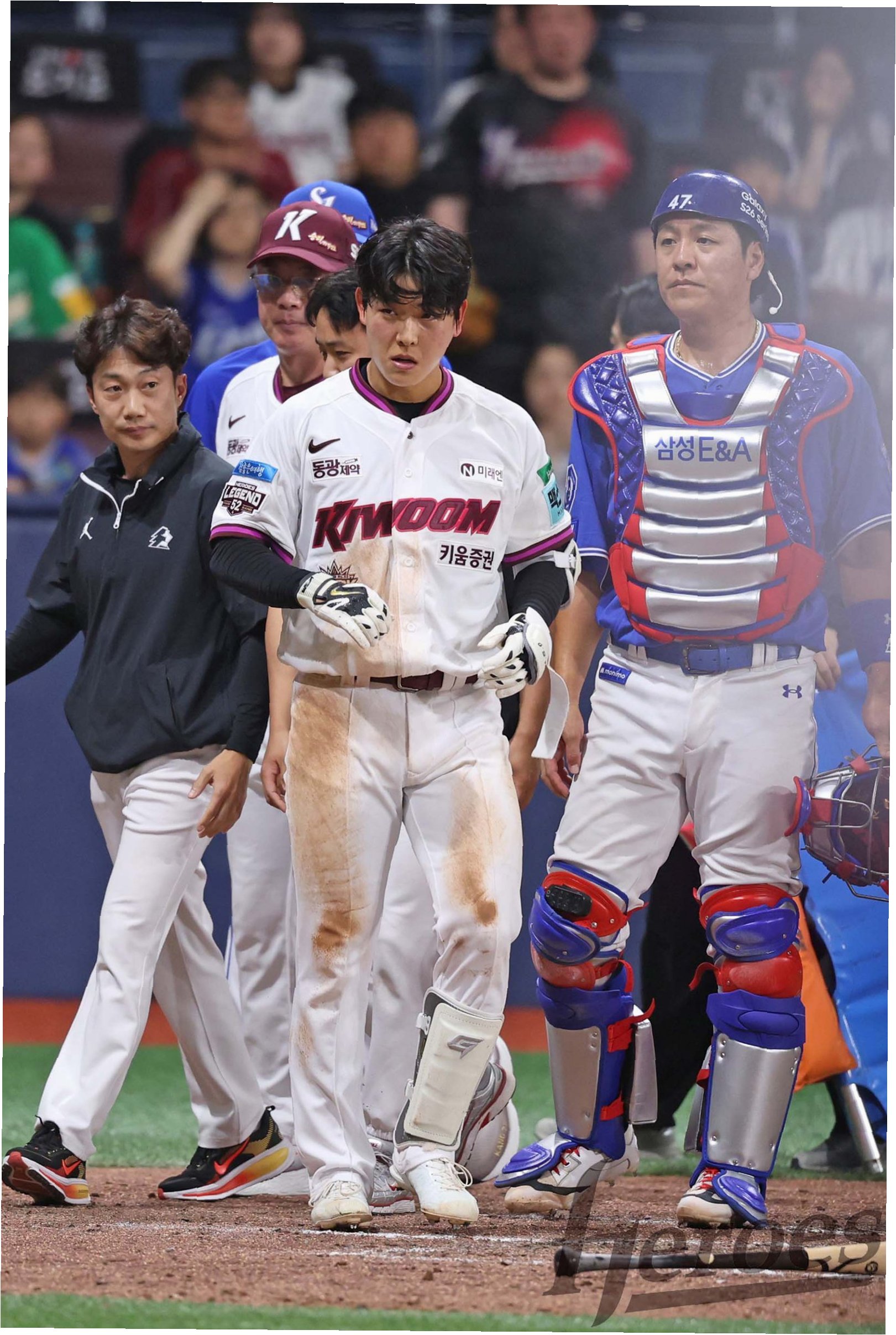 삼성 라이온즈 투수 미야지 유라의 148km/h 직구가 키움 히어로즈 타자 박수종의 머리 부근을 강타하며 경기가 중단되었습니다. 즉각 구급차가 투입되고 양 팀 코칭스태프가 달려 나오는 긴박한 상황이 연출되었습니다. 가까스로 일어난 박수종은 코치의 부축을 받으며 1루로 걸어 나간 뒤 교체되었고, 투수 미야지 역시 경기를 이어가지 못했습니다.