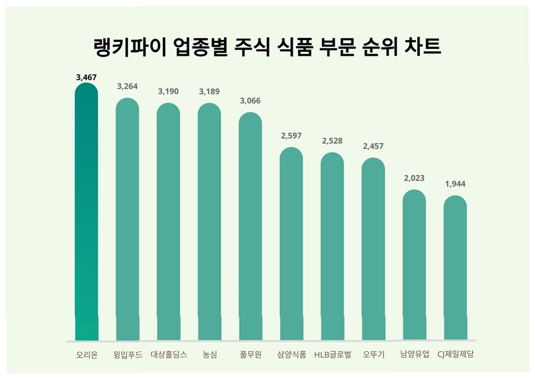 Q.오리온의 주가 상승률이 다른 식품 기업들을 압도하는 이유는 무엇인가요?