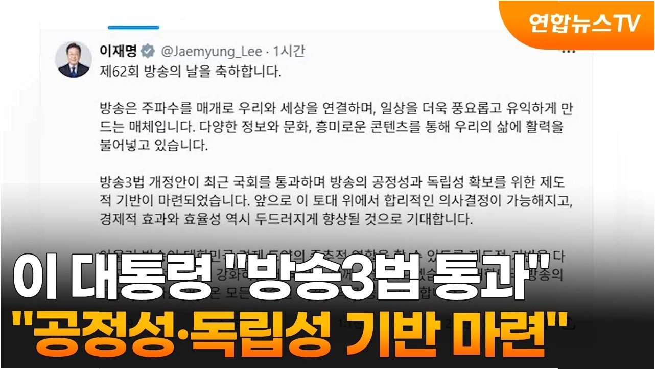 이재명 대통령은 영상 축사를 통해 방송 산업의 규제 완화를 강조했습니다. 그는 방송이 국민과 세상을 연결하는 중요한 매체임을 강조하며, K-콘텐츠의 발전을 위한 제도적 지원을 약속했습니다. 또한, 낡은 규제를 네거티브 방식으로 전환하여 공정한 경쟁 환경을 조성하겠다는 의지를 밝혔습니다. 이는 방송 산업의 경쟁력 강화와 혁신을 지원하려는 정부의 의지를 보여주는 부분입니다.