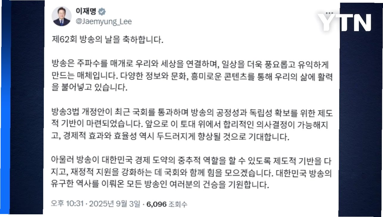 이번 방송의 날 기념식에서는 언론의 역할, 방송 관련 법안, 규제 완화 등 다양한 주제에 대한 논의가 이루어졌습니다. 이진숙 위원장은 '민주주의'를 강조하며 언론의 가치를 되새겼고, 이재명 대통령은 규제 완화를 통해 방송 산업의 발전을 지원하겠다는 의지를 표명했습니다. 이러한 메시지들은 방송의 미래와 관련된 다양한 쟁점들을 시사하며, 앞으로의 변화에 대한 기대를 높였습니다.