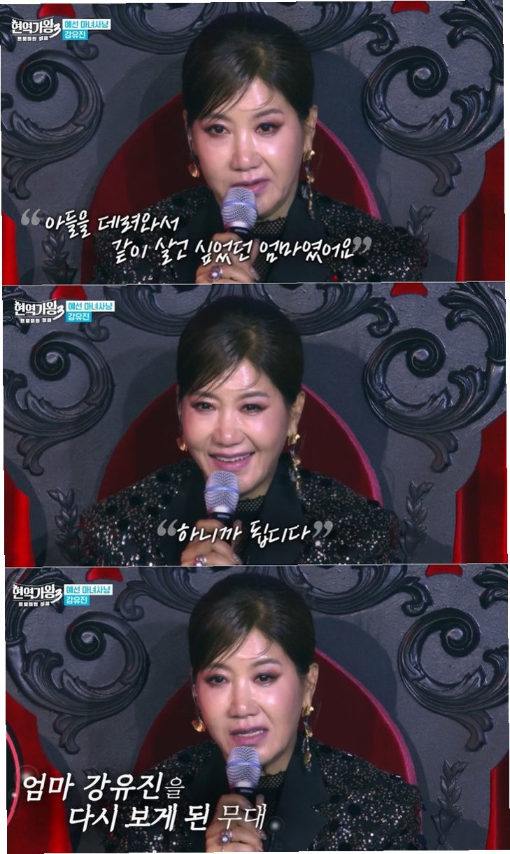 과거 '미스트롯2' 출연 당시 이혼 사실과 아들과 떨어져 지내야 했던 현실을 솔직하게 전했던 강유진은 '현역가왕3'에서도 '아들과 함께 살고 싶다'는 바람을 드러냈습니다. 비록 아들은 할머니와의 생활에 익숙해져 엄마의 마음을 먼저 헤아리는 모습을 보였지만, 이러한 아들의 성장은 강유진에게 서운함, 고마움, 미안함을 동시에 느끼게 했습니다. 어린 시절부터 '가수 엄마'를 자랑스러워하며 늘 곁에서 응원해 온 아들은 강유진에게 가장 단단한 버팀목이 되어주었습니다.
