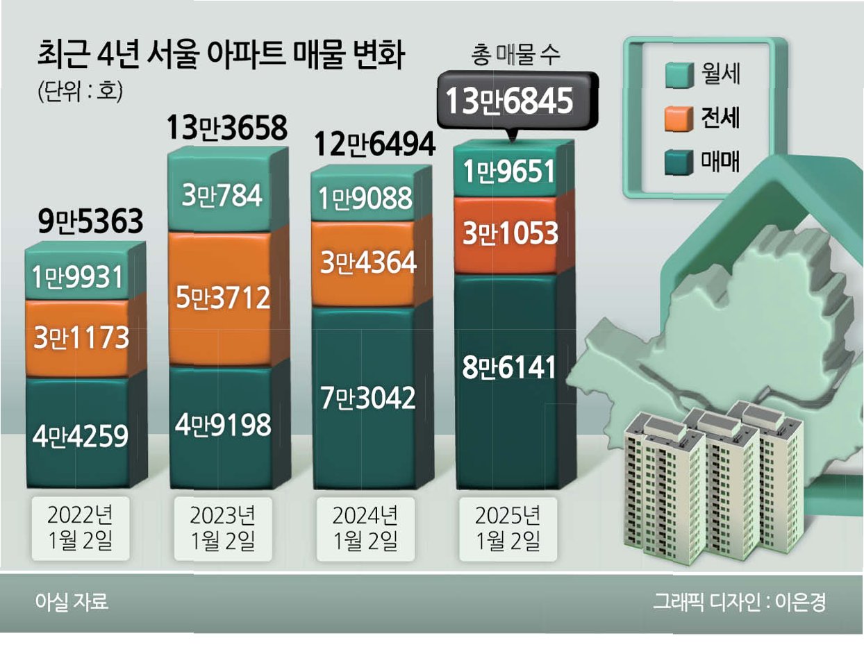 강력한 대출 규제와 유예기간 종료가 다가오면서, 그동안 버텨왔던 다주택자들이 매물을 내놓기 시작했습니다. 최근 열흘간 서울 고가 아파트 밀집 지역의 매물이 눈에 띄게 증가했으며, 특히 마포구의 한 아파트 단지에서는 하루에만 두 채의 매물이 새로 나왔습니다. 46평형은 27억 원, 33평형은 25억여 원으로, 최근 호가보다 5천만 원 이상 낮아진 가격으로 나왔습니다. 이는 '빨리 팔아달라'는 매도자의 절박함과 함께, 가격 조정 가능성까지 시사하는 대목입니다.