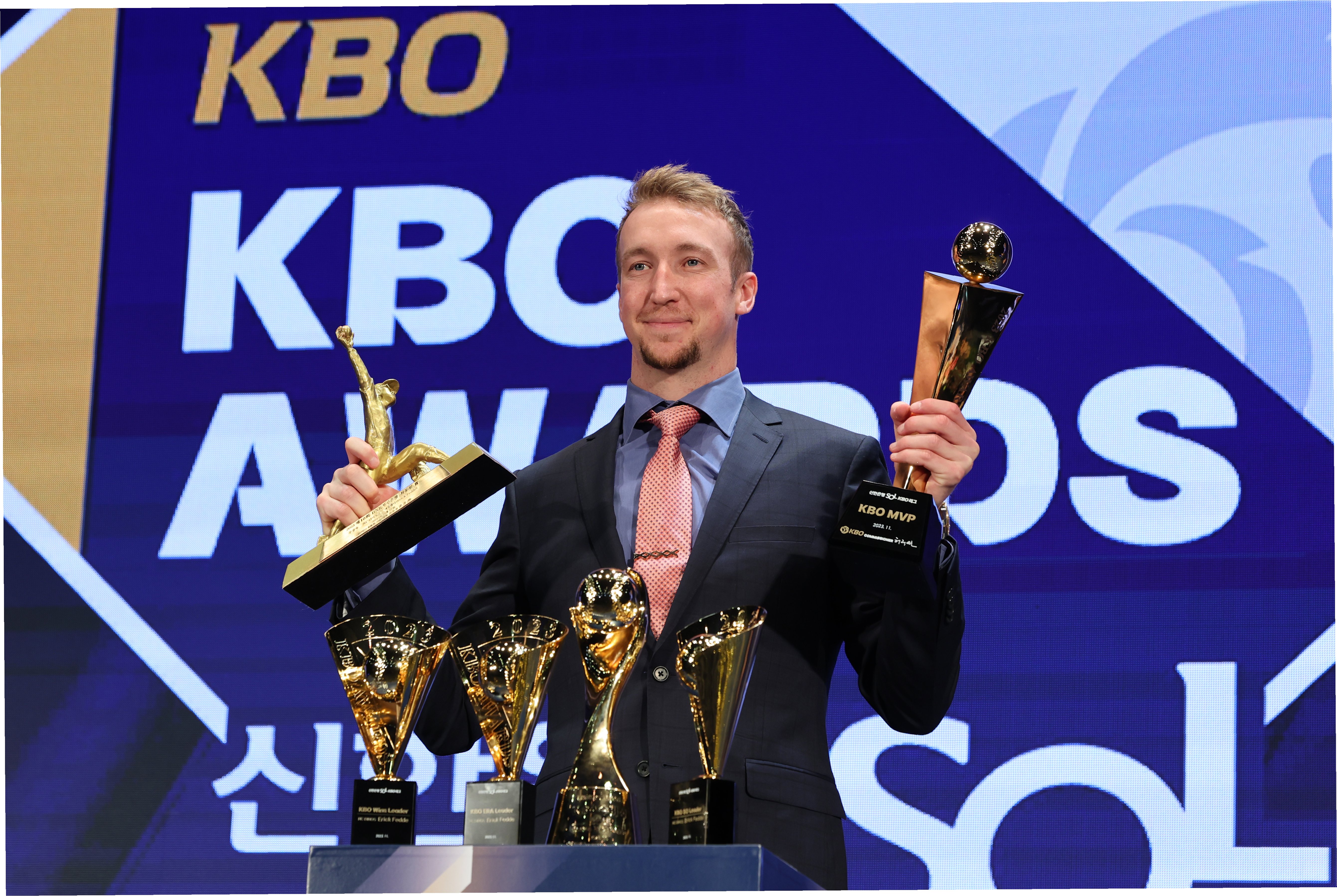 A.2023년 KBO 리그에서 30경기에 선발 등판하여 20승 6패, 평균자책점 2.00을 기록하며 평균자책점, 다승, 탈삼진 부문 타이틀을 석권하고 정규시즌 MVP를 수상했습니다. 이는 37년 만의 트리플 크라운 달성이자 외국인 투수 최초의 기록이었습니다.