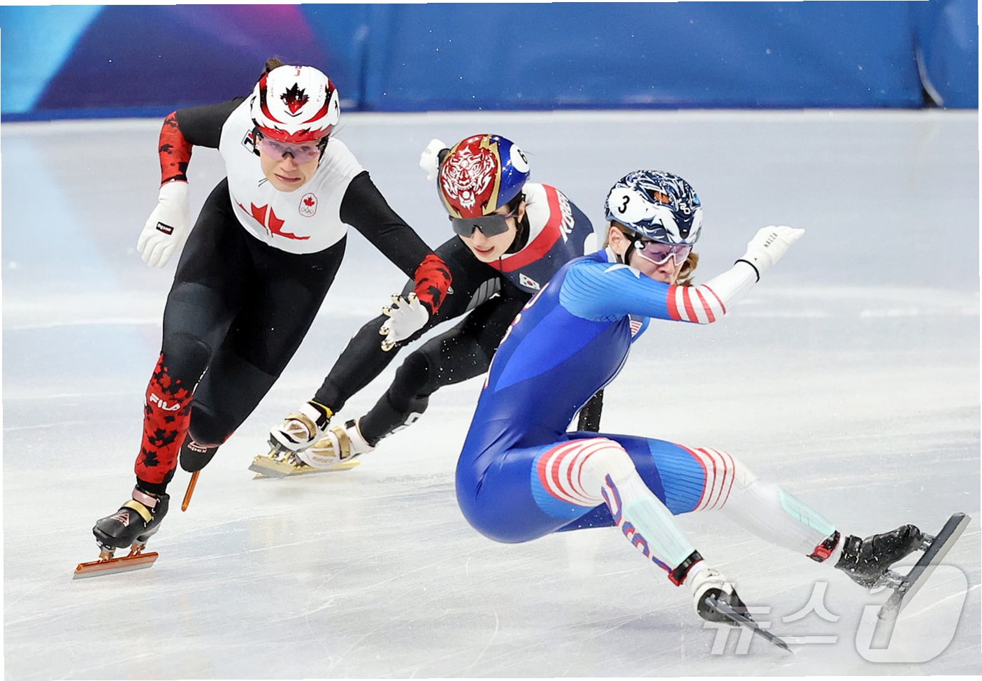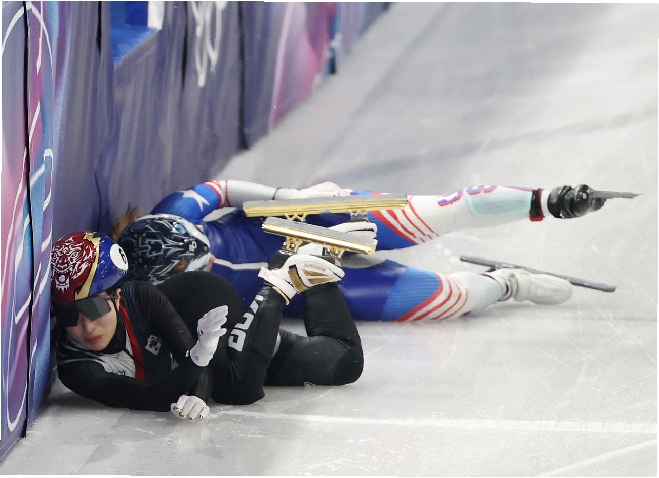 A.김길리 선수는 미국 선수 코린 스토더드가 레이스 중 미끄러지면서 충돌하여 넘어졌습니다. 스토더드 선수의 성급한 경기 운영과 당시의 빙질 상태 등이 복합적으로 작용한 것으로 분석됩니다.