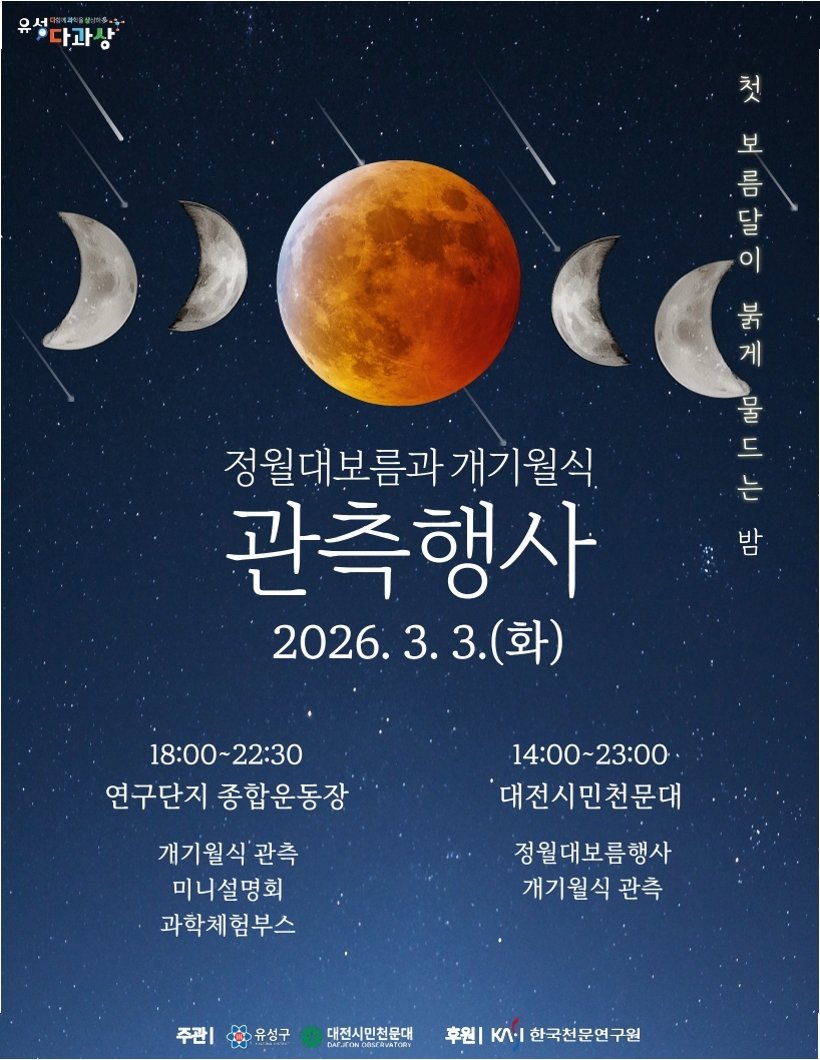 정월대보름인 3일, 우리나라를 포함한 동아시아, 호주, 아메리카 대륙에서 붉은 달, 즉 개기월식 현상을 관찰할 수 있습니다. 이는 1990년 2월 이후 무려 36년 만에 정월대보름과 개기월식이 겹치는 매우 희귀한 우주쇼입니다. 개기월식은 지구가 태양과 달 사이에 놓여 지구의 그림자가 달을 완전히 가리는 현상으로, 밤하늘에 신비로운 붉은 달을 선사합니다.