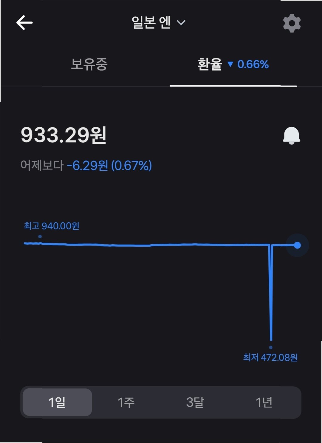 금융 플랫폼 토스뱅크에서 일본 엔화 환율이 일시적으로 정상 가격의 절반 수준까지 떨어지는 환전 오류가 발생했습니다. 어제 저녁 7시 29분부터 약 7분간 930원대였던 엔화 환율이 472원대로 적용되는 황당한 사고가 벌어졌습니다. 이로 인해 낮은 가격에 자동 매수를 신청해 둔 일부 이용자들은 실제로 떨어진 환율에 엔화를 구매하는 상황이 발생했습니다.