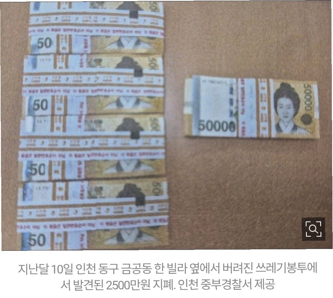 인천의 한 주택가에서 버려진 쓰레기봉투 속에서 5만 원권 다발, 총 2천500만 원이 발견되었습니다. 헌 옷 수거를 하던 60대 남성이 우연히 이를 발견하고 즉시 경찰에 신고했습니다. 발견된 현금은 한국은행 띠지로 묶여 옷에 덮여 있었으며, 경찰은 즉시 소유주를 찾기 위한 수사에 착수했습니다.