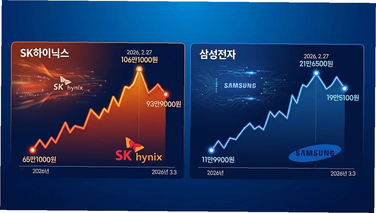중동 지역의 긴장 고조로 글로벌 금융시장이 불안정한 모습을 보이며 국내 증시 변동성이 커지고 있습니다. 코스피 대장주인 삼성전자와 SK하이닉스의 주가 하락은 개인 투자자들의 공포감을 증폭시키고 있습니다. 지난 13일, 삼성전자는 2.34% 하락한 18만 3500원에, SK하이닉스는 2.15% 하락한 91만 원에 거래를 마감하며 2거래일 연속 하락세를 기록했습니다. 국제유가 100달러 돌파는 투자 심리를 더욱 위축시켜 '18만 전자'와 '90만 닉스'라는 가격대까지 밀려나게 했습니다. 약 420만 명의 삼성전자 개인 투자자와 50만 명의 SK하이닉스 개인 투자자들은 미국과 이란의 충돌 격화에 따라 투자 심리가 더욱 얼어붙는 양상을 보이고 있습니다.