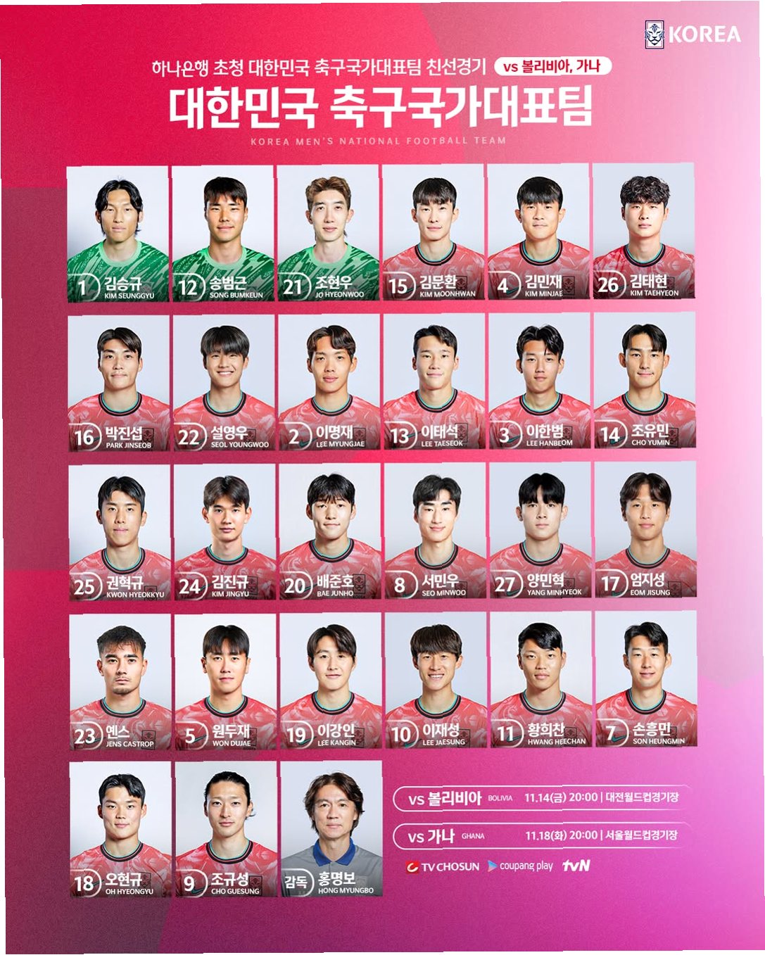다가오는 유럽 원정 A매치 평가전에 나설 대한민국 축구 국가대표팀의 등번호가 공식 발표되었습니다. 이번 명단에는 '캡틴' 손흥민을 비롯해 이강인, 이재성 등 핵심 선수들이 포함되었으며, 이들은 코트디부아르전과 오스트리아전에 배정된 등번호를 달고 북중미 월드컵을 향한 실전 점검에 나섭니다. 대한축구협회는 공식 채널을 통해 26명의 선수 등번호를 공개하며 팬들의 기대감을 높였습니다.