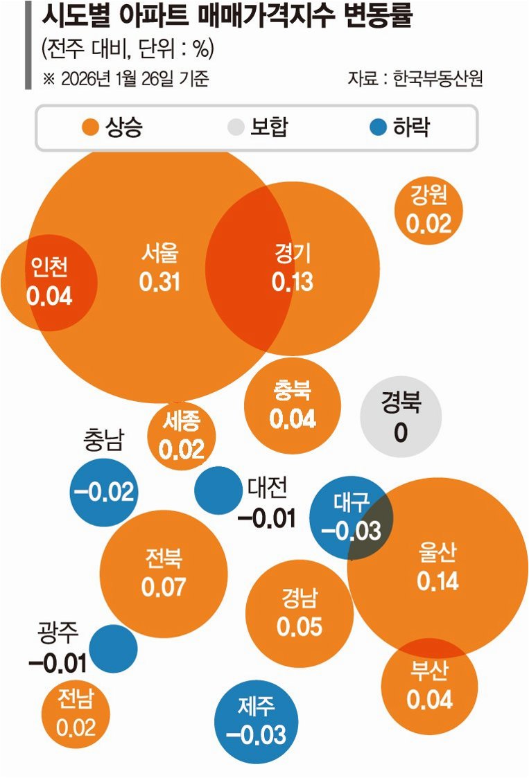 강남 3구(강남·서초·송파구)와 용산구는 5주 연속 하락세를 이어갔습니다. 강남구와 용산구는 하락폭이 커졌지만, 서초구와 송파구는 내림폭이 둔화되는 등 초고가 지역에서 나타나던 일관된 흐름이 다소 흐트러진 모습입니다. 이와 대조적으로 노원구는 0.14%에서 0.23%로, 구로구는 0.14%에서 0.2%로 오름폭이 커지며 외곽 지역의 상승세가 두드러지고 있습니다.