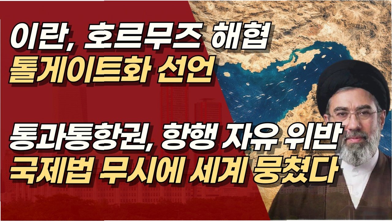 호르무즈 통행세, 국제법 위반! 한국, 자유 항행 수호 위한 국제 공조 동참해야