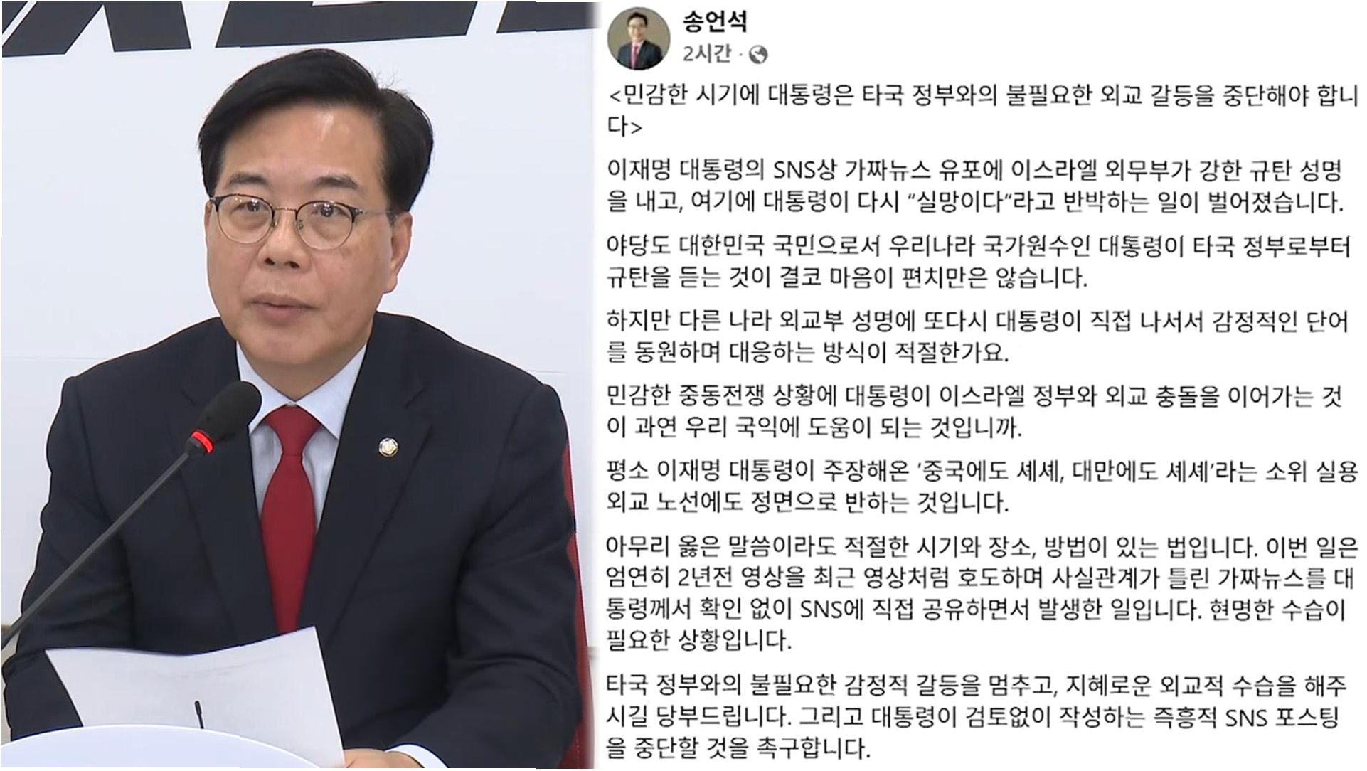 한동훈 전 대표는 이재명 대통령의 이스라엘 관련 외교 논란을 두고 국익을 해치는 위험한 행동이라고 비판했습니다. '여기도 쎼셰, 저기도 쎼셰' 외교를 주장하던 이 대통령이 맥락 없이 국내 정치적 이익을 위해 외교적 충돌을 야기하는 것은 국민과 국가 경제에 피해를 줄 수 있다는 지적입니다. 외교는 국내 정치와 달리 신중하고 국익을 최우선으로 고려해야 함을 강조합니다.
