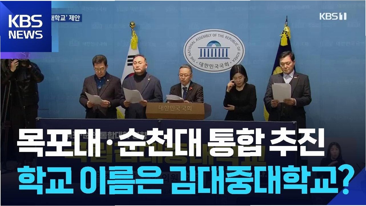 통합의 긍정적 신호탄: 국립 목포대와 순천대의 새로운 시작국립 목포대와 순천대의 통합 논의가 정부의 긍정적인 신호와 함께 급물살을 타고 있습니다. 교육부는 '연합형 통합' 방식을 긍정적으로 검토하며, 두 대학의 통합은 사실상 막바지에 다다른 것으로 보입니다. 이는 전남 지역 교육의 새로운 지평을 열고, 지역 사회 발전에 크게 기여할 중요한 발걸음입니다. 통합 대학은 전남의 미래를 짊어질 인재 양성의 요람이 될 것입니다. 국립김대중대학교: 전남의 자긍심을 담은 교명 제안이러한 긍정적인 흐름 속에서, 전남 지역 국회의원들이 통합 대학의 새로운 교명으로 '국립김대중대학교'를 공식 제안했습니다. 이들은 김대중 대통령의 숭고한 정신과 업적을 기리고, 전남의 정체성을 널리 알리고자 하는 의지를 밝혔습니다. 김..