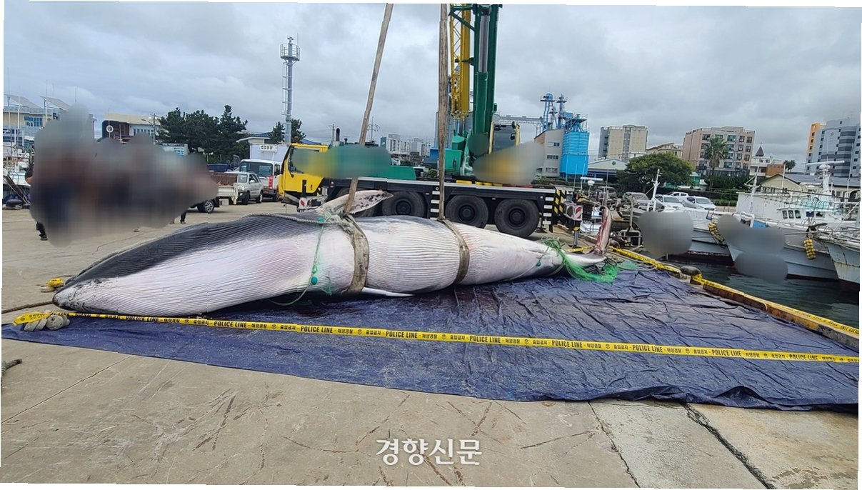 제주 바다, 10m 멸종위기종 참고래, 슬픈 그물과의 조우
